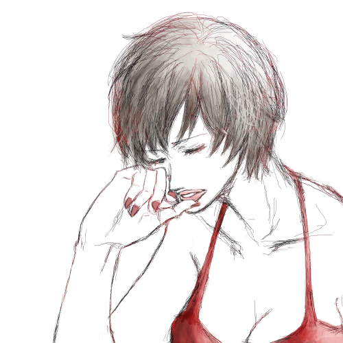 この絵を描くために自分でポーズとって写真撮ってました。きもいですよ(笑)