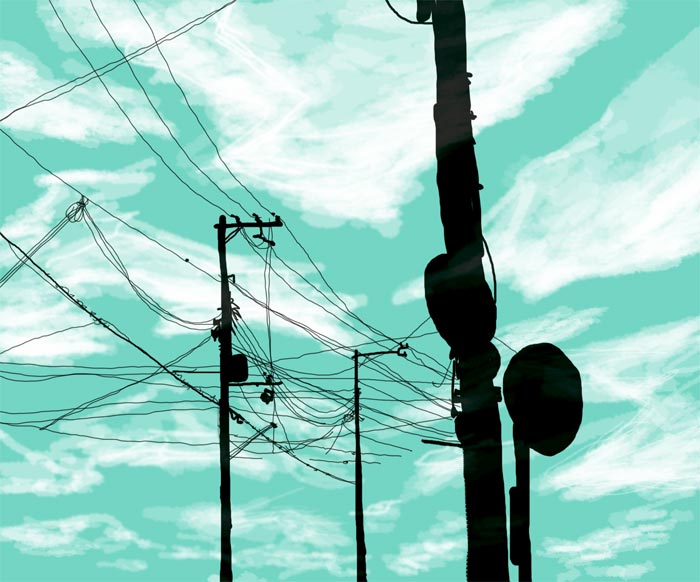 電柱の写真をトレスしたのですが電線の先に民家があったので電線が切れてます。
