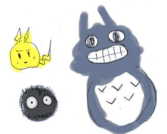 ぴかちう まっくろくろすけ 笑うせぇるすまんみたいなととろ(M氏画)