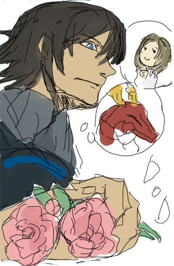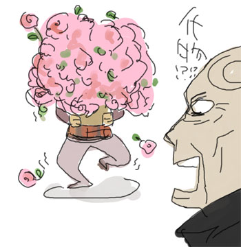妙に花束を持っているのを見て花の事が念頭にあったので